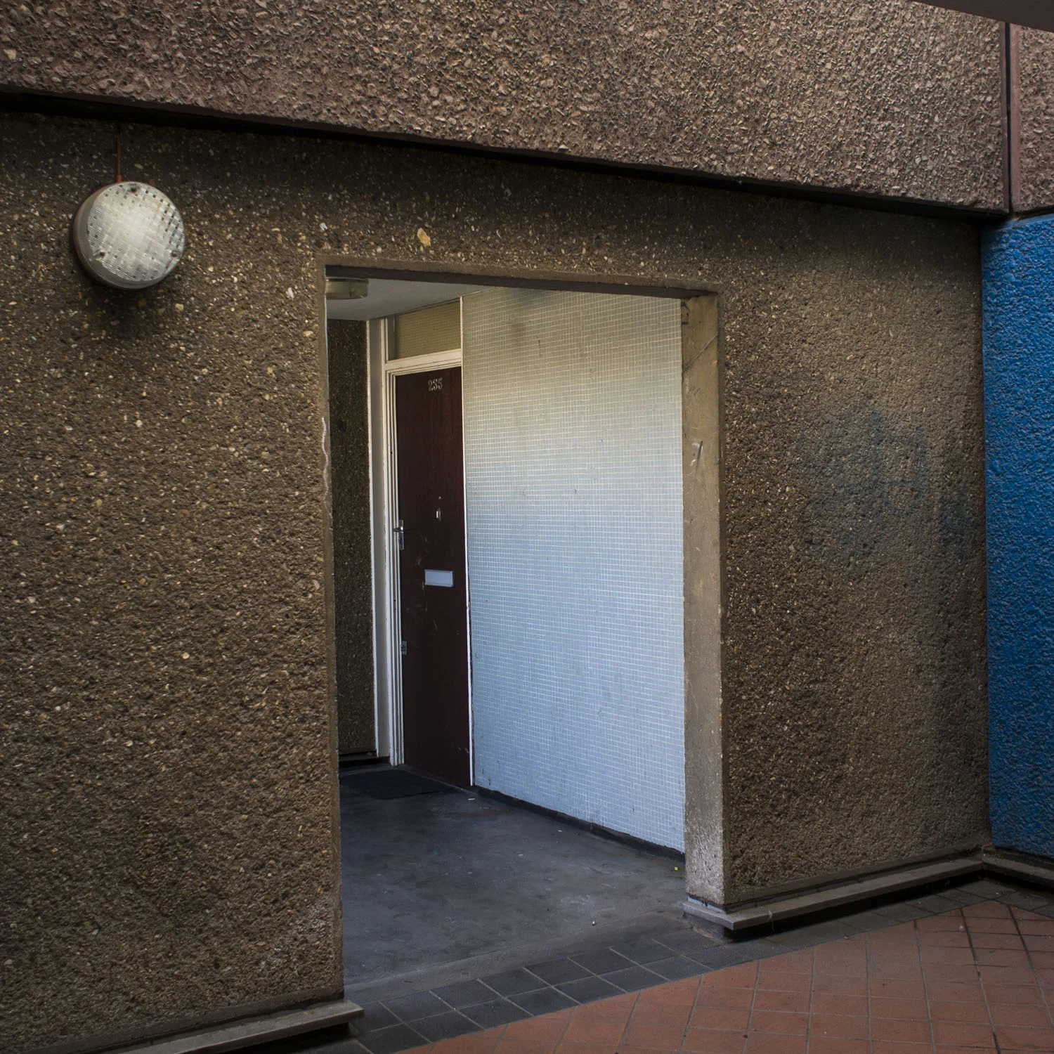 The work went on display as an audio-visual exhibition in and around the empty flats and corridors of Packington Estate just before the blocks were torn down. Life size-prints were pasted on the spot the pictures were taken and visitors could walk around listening to sounds of the estate and recordings of residents sharing their stories and lives on the estate.